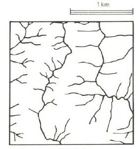 | Drainage pattern | Trellis pattern with isolated radial areas | ||