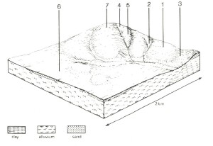 | GEOLOGY Age, lithology | Recent alluvial clay, silt and sand shallowly overlying unconsolidated Palaeocene sand with some clay and silt. | ||||||