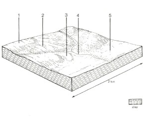 | Land form element | Crest, upper slope | Middle slope | Crest, slope | Lower slope | - |