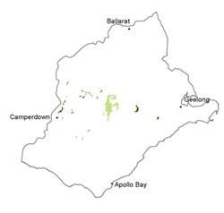 | These soils have developed on aeolian deposits, predominantly lunettes associated with basaltic areas or former swamps, lakes and depressions. The surface is a self-mulching clay loam to light clay which overlies a strongly structured heavy clay subsoil which exhibits strong vertic properties, such as lenticular peds and smooth surfaces where swelling and shrinking produce polished surfaces. The profile overlies fine textured unconsolidated sediments with a high carbonate content at a depth of about 60 to 80 cm continuing below 150 cm. The surface soil and upper subsoil are dark (black, brown or red) coloured reflecting either/or high organic matter content and basaltic parent material. Topographical position may influence soil depth, and in conjunction with slope and land use, influence the presence or absence of the friable surface material. While structure is strong throughout with evident deep cracks, permeability will be low once the clays have swelled, putting strength strains on plant root systems, particularly when the soil dries. Notable characteristics are well drained soils due to the landform (lunettes are elevated above the plain) and the high calcium content of the subsoil and deep regolith. This is a nutrient rich soil type, though sodic and saline at depth. |  |