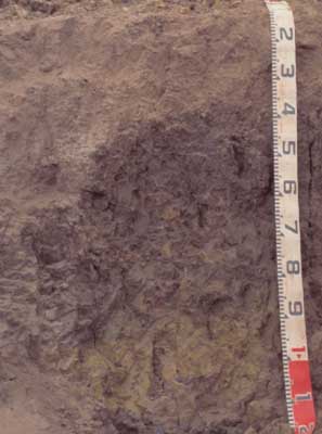 B21 | 60-90 | Black (10YR2/1 moist); heavy clay; few pockets of ferruginous fine gravel; coarse prismatic structure; pH 6.8; abrupt change to: | ||