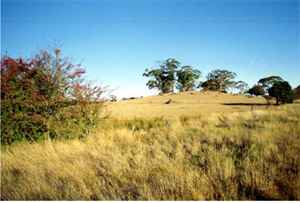Granitic soil in the virgin state is unsuitable for cropping however after several years under pasture, good crops of oats, wheat, barely and peas can be grown where waterlogging is not a problem. In most of the granitic country, the impermeable subsoil or bedrock is too close to the surface (within half a metre) and winter waterlogging results in very disappointing crops. However, there are some localised areas where the topsoil is deep enough or the subsoil permeable enough that waterlogging is not a problem and quite good crops can be grown. Summer fodder crops and potatoes can be grown, but without irrigation, yields can be poor in dry seasons. Potatoes must be dug in autumn to avoid winter waterlogging. The granitic soil is best suited for growing pasture. Compared with the heavier soils of the district, granitic soil needs a smaller amount of rain to start autumn growing. Consequently, autumn and winter growth of pastures can be very good. However, because of poor water storing capacity, spring growth usually finishes earlier on the granitic soil than on the heavier soils of the district. | ||||