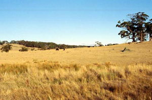 Granitic soil in the virgin state is unsuitable for cropping, however after several years under pasture, good crops of oats, wheat, barely and peas can be grown where waterlogging is not a problem. In most of the granitic country, the impermeable subsoil or bedrock is too close to the surface (within half a metre) and winter waterlogging results in very disappointing crops. However, there are some localised areas where the topsoil is deep enough or the subsoil permeable enough that waterlogging is not a problem and quite good crops can be grown. Summer fodder crops and potatoes can be grown, but without irrigation, yields can be poor in dry seasons. Potatoes must be dug in autumn to avoid winter waterlogging. The granitic soil is best suited for growing pasture. Compared with the heavier soils of the district, granitic soil needs a smaller amount of rain to start autumn growing. Consequently, autumn and winter growth of pastures can be very good. However, because of a poor water storing capacity, spring growth usually finishes earlier on the granitic soil than on the heavier soils of the district. | ||||