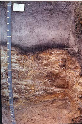 | Deep sandy soils generally have poor plant water/nutrient holding capacity. The sandy nature of the soils make them prone to wind and sheet and rill erosion. Soils may be hydrophobic (in conjunction with organic coatings) when dried out, taking time to reabsorb moisture. These soils do however drain rapidly. The soil profile is consistently acidic (often associated with sandy surfaces due to the lack of base minerals) and may or may not have organic matter (humose or peaty surfaces). This restricts the uptake of certain nutrients as well as intolerance for some plant species (due in part to the increasing mobilisation of aluminium and manganese). Deficiencies of calcium, potassium and molybdenum are likely. Coffee rock is a pan of variable strength that is found beneath 75cm in these soils (Podosols) where sesquioxides (iron and aluminium) and organic matter have cemented soil material. Where this is only weakly developed then it is called a fragipan. This is often a restriction for root development by limiting water and gas movement. This may also have an influence on subsurface water movement such as lateral flow. | ||||