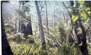 | The gradational soil profile has few physical limitations for agricultural production. This allows water and gas (air) to move without physical limitations, but remains dependent on any chemical or depth restrictions. Friable surface soils (and subsoils) occur where there is a build up of organic matter, (and to some extent iron rich clay complexes) generally in cooler wetter areas (less extreme wetting and drying cycling). The acidic subsoil most likely reflects the acidic nature of the parent material or where there has been sufficient leaching of the soil (possibly due to the high rainfall of the Otways). These subsoils affect nutrient availability, creating a nutrient imbalance and the potential for aluminium and manganese toxicity. Deficiencies of calcium, potassium and molybdenum are likely. Charcoal was also observed in the profile at 15cm, possibly an indicator of historic fires. | ||||