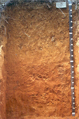 C | 180 | Strong brown (7.5YR5/6) with some red (2.5YR4/8) mottles; sand; apedal stucture. | ||