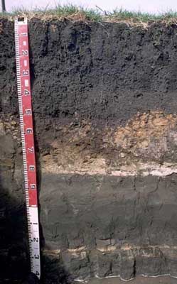 B21 | 25-45 | Black (10YR2/1) light medium clay; strong medium polyhedral, parting to strong fine polyhedral structure (smooth faced peds); weak consistence moist; pH 8.0; gradual boundary to: | ||