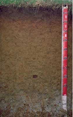 | A lack of strong texture contrast between surface (A) horizon and subsoil (B21) horizon is a key feature of gradational soil types as the clay increases gradually down the profile to the extent that the deep subsoil formed from deeply weathered Neogene sediments exhibits a very high clay content. The surface soil is moderately acid, as is the upper subsoil whereas the deeper subsoil (from 50 cm depth) becomes slightly to moderately acid. The salinity rating is very low throughout most of the profile and becomes low in the deeper subsoil. Plant available water capacity (PAWC) is considered to be moderate (estimated at 120 mm) for the top metre of the soil profile. The surface soil has a high organic matter content ( %OC) which is important to promote aggregation of soils such as these with high fine sand and silt contents. The nutrient status of the surface soil is moderate (based on the sum of the exchangeable basic cations). The subplastic properties of the subsoil may lead to problems with sealing of earth dams. Sealing can be improved by compaction at the optimum water content and treatment with sodium tri-polyphosphate or addition of bentonite (Rolfe 1989). | ||||