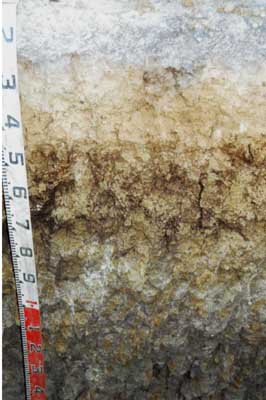 B21s | 20-50 | Dark yellowish brown (10YR4/4 moist and 10YR6/8 dry); light sandy clay; massive; weak to firm consistence; clear and wavy boundary to: | ||