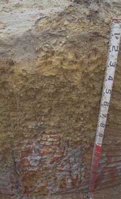 Trenched site showing clear transition from PODOSOL (near) to CHROMOSOL (far)