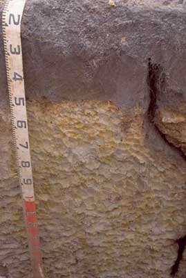 B23g | 80/90+ | Mottled light yellowish brown (2.5Y6/3) light grey (2.5Y7/2 dry) and yellowish brown (10YR5/8); loam; apedal massive; pH 4.6. | ||