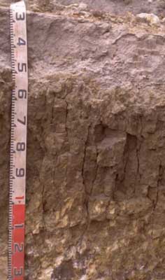 B21ss | 50/60–100/120 | Dark yellowish brown (10YR3/4 moist and dry); many (~25%), faint, fine to coarse (5-20 mm) yellow brown/dark red mottles; heavy clay; coarse (50-120 mm) prismatic, parting to thick lenticular or angular blocky structure; slickensides; pH 6.0;diffuse yellower; boundary to: | ||