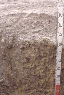 | Strong texture contrast between the surface soil and the subsoil is a very important soil feature. This can have a major effect by reducing and/or redirecting the internal drainage and restricting root growth beyond the upper horizons. Options include reduced tillage, improving organic matter content and altering the subsoil through artificial drainage (ripping, mole drainage) and/or chemical amelioration (gypsum) to improve structure. Bleached A2 horizons (or subsurface soils) are a major feature of many of soils within the Corangamite Catchment Management Authority (CMA) region. They are an indication of restricted drainage, poor soil structure (often massive) and low organic matter, nutrient and water holding capacity, nearly always in conjunction with a restrictive soil below. These bleached horizons may act as conduit for subsurface flow, particularly on sloping ground. If the soil is dispersive then gypsum application would be suitable, while increasing organic matter and maintaining vegetative cover is important. Ferruginous and ferromanganiferous nodules, concretions and pans (see the A2ec horizon in this profile) can restrict root penetration and limit available water holding capacity where there are sufficient amounts, often forming a discontinuous or continuous pan where concentrated (>50%). They are also an indication of a periodic waterlogging. Either shallow rooted species can be planted to avoid the nodules, subsoil drainage may need to be considered, possibly in conjunction with deeper rooted plants which could puncture the nodule layer and access available water and nutrients stored below. Acidic surface soils (topsoil) are often associated with sandy surfaces due the lack of base minerals and may or may not have organic matter (humose or peaty surfaces). Their acidic nature restricts the uptake of certain nutrients as well as intolerance for some plant species (due in part to the increasing mobilisation of aluminium and manganese). The application of lime is the main method of increasing the pH, reducing toxic levels of nutrients to plants while increasing the availability of nutrients such as calcium, potassium and molybdenum. Mottled subsoils are common and are an indication of periodic waterlogging, particularly if the mottles are pale (low oxygen conditions). Some brighter mottling may be due to past soil mixing and clay illuviation. Improved drainage, with the application of gypsum for sodic subsoils may be beneficial. | ||||