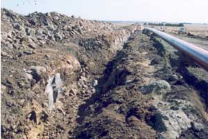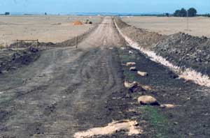 | The dense, coarsely-structured sodic subsoil is dispersive, restricting root growth and drainage. The subsoil displays vertic features (i.e. slickensides) which indicates that significant shrinking and swelling occurs during wetting and drying cycles. This may have engineering implications and is likely to explain the variability in surface horizon depth across the trench. The subsoil has a high level of soluble salts, which will restrict the growth of salt-sensitive species. | ||||