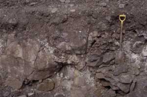 B22k | 50/70 + | White soft calcium carbonate (CaCO3) with fine olive brown (2.5Y4/3 moist) and dark yellowish brown (10YR4/6 moist) mottles in clay matrix; medium clay to light medium clay; pH 8.3. | ||