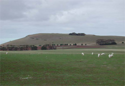 0.01% of CMA region The steep low cone south-east of Anakie belongs to a suite of eruption points across the Western Plains. With steep slopes, the cone has little remnant vegetation remaining (less than 0.5%) with the major vegetation class being Scoria Cone Woodland. These remnants occur mainly as reserves on upper slopes and crests, and footslopes. These cones have highly fertile side slopes and footslopes that have been used for cereal production, horticulture and as a source of scoria for road construction. The basaltic rock and scoria support shallow friable red texture contrast and gradational soils on the relatively steeper middle and upper slopes. The gentler lower slopes contain patches of shallow black self-mulching clay. Overland flow is likely on the steeper slopes. Nutrient leaching and decline are possible due to the shallow and permeable nature of gradational soils. |