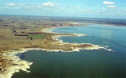 ![]() The undulating rises on teh southeastern margin of Lake Corangamite are derived from basaltic lava deposits with low stony rises, plains and depressions. |