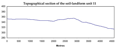 | Landform element | Well-drained non-sandy areas | Patches of deep sandy soil | Poorly drained non-sandy areas | Low lying areas | Long gentle slope | Crest | Drainage line | Dry exposed slopes |