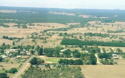 ![]() Looking east over the town of Meredith towards the Brisbane Ranges. The forested rises east of Meredith are associated with dissection of the Moorabool River |