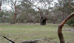 0.27% of CMA region The undulating rises in the Meredith area are composed of a veneer of Neogene fluvial gravels, sands and clays over Lower Ordovician marine slate and sandstone. Often these Ordovician sediments are exposed in dissection of this landscape where the Neogene material has been removed. These sedimentary rises have Grassy Dry Forests and Heathy Dry Forests as the dominant vegetation communities. Slopes of the rises are generally gentle, though there can be quite steep slopes and scarps neighbouring the Moorabool River. Land use is predominantly grazing with some cropping. Soils on the slopes consist of neutral and alkaline mottled yellow and brown texture contrast soils with occasional red equivalents. Overland flow is attributed to the hardsetting surfaces of these texture contrast soils and their low subsoil permeability. Salting is also common in the dissections and gullies, along with sheet and rill erosion. This salting occurs especially adjacent to Ordovician sediments. |