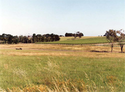 ![]() Gentle plain and associated drainage depression of the undulating rises beside the Princes Highway at Pettavel. These rises overlook Geelong and have become populat for residential development purposes |