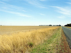 1.20% of CMA region This large single unit lies to the west of Shelford and is bound by basaltic plains to the north, west (Unit 118) and south (Unit 125) and a dissected valley to the east (Unit 155). As part of the volcanic Western Plains, landscape components include plains, very low undulating plains/rises with some stone, and lunettes. Little remnant vegetation exists on these cleared plains with less than 0.5% Plains Grassland/Plains Grassy Woodland Mosaic as the only vegetation class. The soils are mottled black texture contrast soils (Sodosols and Chromosols), some strongly sodic and some black cracking clays (Vertosols) associated with lunettes. Site drainage affects the susceptibility to waterlogging and compaction (also dependent on upper soil depth). The degree of sodicity is important to structure decline as well as nutrient availability. This drier area is used for cropping (where minor stone permits) as well as grazing (sheep). |