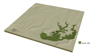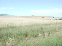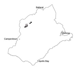 0.34% of CMA region This unit of undulating low hills is derived from residual granitic outcrops on the Western Plains. This single unit lying north-east of Lismore near Wallinduc, consists of granitic outcrop with a partially remaining veneer of Neogene (colluvial) sedimentary material. Unit components include rocky and sandy crests, upper, mid and lower slopes. This unit is surrounded by basaltic plains (Units 136 and 117) and a small sedimentary area (Unit 172). The soils are uniform sands (Tenosols) or sands over clay on the upper slopes, while strongly sodic mottled brown, grey and yellow texture contrast soils (Sodosols) are found on the mid and lower slopes. Land use is mainly grazing (sheep). The sloping terrain in conjunction with loose sandy surface soils means this unit is susceptible to sheet and rill erosion and nutrient decline. It is also susceptible to gully erosion on the lower slopes with the strongly sodic subsoils and coarse sand fraction. |