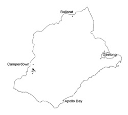 ![]() The undulating rises south-east of Cobden provide deep soils with high rainfall that support a variety of land uses |