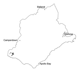 | LANDUSE | Cleared areas: Grazing beef cattle; dairy cattle; sheep Minor uncleared area: Nature conservation; including the rugged coastline of the Port Campbell National Park | ||||
