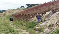 ![]() | ![]() Quaternary basalt overlying Miocene Port Campbell limestone in the valley of the Curdies River |