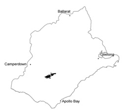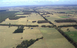 ![]() Cleared undulating rises near Irrewillipe are mainly used for dairy farming | ![]() |