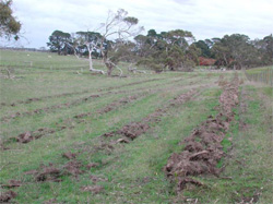 ![]() Drainage line of the Merrigig Creek with a planting of natives. Salinity was evident in this depression | ![]() |