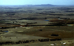 ![]() Level plains of Lara in the foreground of plains and rises leading to the You Yangs. This area is currently undergoing major land use change as the urban spread of Geelong further expands across this landscape |