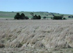 0.30% of CMA region The undulating to gently undulating low granitic hills south of Pittong are part of the granitic landscapes within the Midlands of the Western Uplands. This Devonian granite unit is located south of Pittong in the north of the catchment. The gentle to undulating slopes graduate into the prominent footslopes, drainage depressions and alluvial fans of Unit 18. Remnant vegetation on the granite is sparse with the Grassy Woodland, Heathy Dry Forest and Riparian Woodland among the major classes. The soils consist of an association of mottled texture contrast soils and deep brown sands. Areas of rocky outcrop occur on the upper slopes and crests with deep sands. Minor mottled sodic texture contrast soils occur on the mid to lower slopes. Unbleached mottled texture contrast soils with lighter textured surfaces may also occur on some of the lower crests. Land use is restricted to grazing and cropping due to the low available water holding capacity and ready leaching of nutrients from these soils. Gully erosion occurs to a moderate extent and is difficult to control on the steeper slopes and valleys of these hills. Salting is also expressed at the surface as evidenced by the presence of spiny rush. |