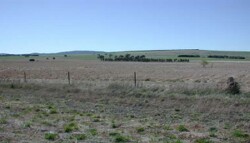 ![]() Undulating low granitic hills south of Pittong. A blue gum plantation is evident on the lower colluvial slopes on these hills |