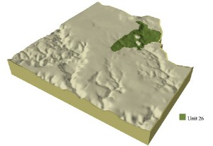 0.05% of CMA region This unit of scarp slopes is underlain by Cainozoic gravel within the dissected Western Uplands. This single scarp unit is on the southern edge of an undulating plain and rise catena formed on older (Palaeozoic) sediments (Unit 9) with a younger sedimentary (Neogene) capping in places. The soils influenced by basaltic colluvium are acidic black cracking clays (Vertosols) with some shallow brown loams (Dermosols) associated with quartzite outcropping. The clay soils are strongly structured but susceptible to sheet erosion due to slope. Depth limitations include water holding capacity as well as stoniness and aggregate stability in the case of the loams. Land use in this lower annual rainfall part of the catchment is generally extensive grazing and occasional cropping. |