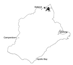 0.54% of CMA region Basaltic plains of the Midlands south of Ballarat are characterised by undulating plains and rises that support manna gum (E. viminalis), narrow-leaf peppermint (E. radiata) and messmate stringybark (E. obliqua). The Herb-rich Foothill Forests occur on the lower depressions of these plains. This unit is an intricate mixture of two land types, one with dark red gradational soils, the other having a mixture of red gradational soils on the upper slopes and a poorer grey sodic duplex soil on the lower slopes and in depressions. Agricultural land use is quite diverse and includes beef cattle and sheep grazing, water supply, horticulture (with potatoes the most common), softwood plantation and residential development. Erosion hazards are minimal. Areas with shallow stony gradational soils are susceptible to leaching of nutrients, and compaction is a problem on the lower slopes and depression. |