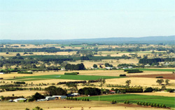 ![]() Vast volcanic red plains of the Midlands looking towards Dunnstown from Mount Warrenheip. The soils of this area have some of the most prized in the catchment owing to their high nutrient versatility and nutrient status |