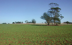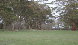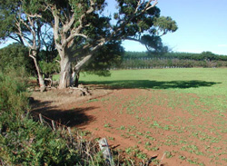 ![]() Stony outcrops occur on mid to upper slopes of gentle rises and plains east of Ballarat. Often these soils have never been cleared and remnant eucalypts indicate their position in the landscape |