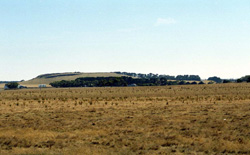 ![]() The moderately inclined low cone near Mount Mercer has a level top with steep slopes exposing basalt and scoria |