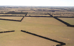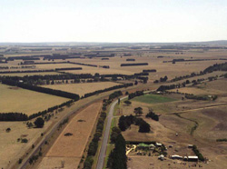 ![]() Cropped and grazed gentle basalt plains with shelter belts of cypress pine and radiata pine |
