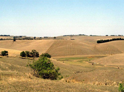 ![]() | ![]() Extensively cleared rolling hills with windbreaks of radiata pine and cypress pine |