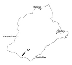 | TOPOGRAPHY Landscape | Dissected hills with broad gentle hill cappings on western periphery of the Otway Range | ||||