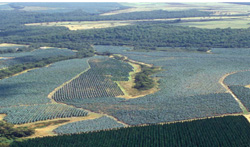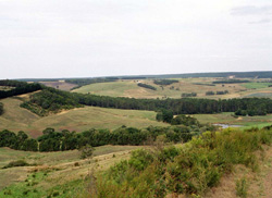![]() | ![]() Pine and blue gum plantations are common on this landscape and the neighbouring Kennedys Creek landsystem (soil-landform unit 87) |