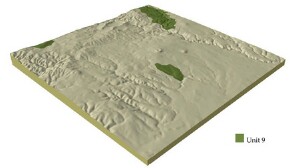 ![]() The vegetated capping in the foreground represents part of the Neogene sediments of this unit |