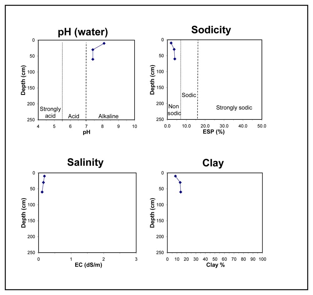 | B2 | 65-130 cm | Dark red (2.5YR3/6) loamy sand, weak to massive structure, weak consistence when dry to moderately moist, some organic staining, pH 7.4; transition to |