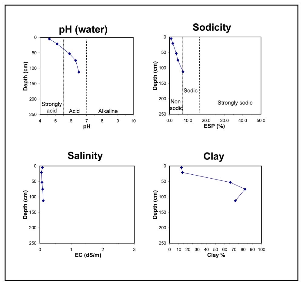 | Aust. Soil Class.: Ferric-Sodic, Mesotrophic, Brown CHROMOSOL (confidence level 2) | |