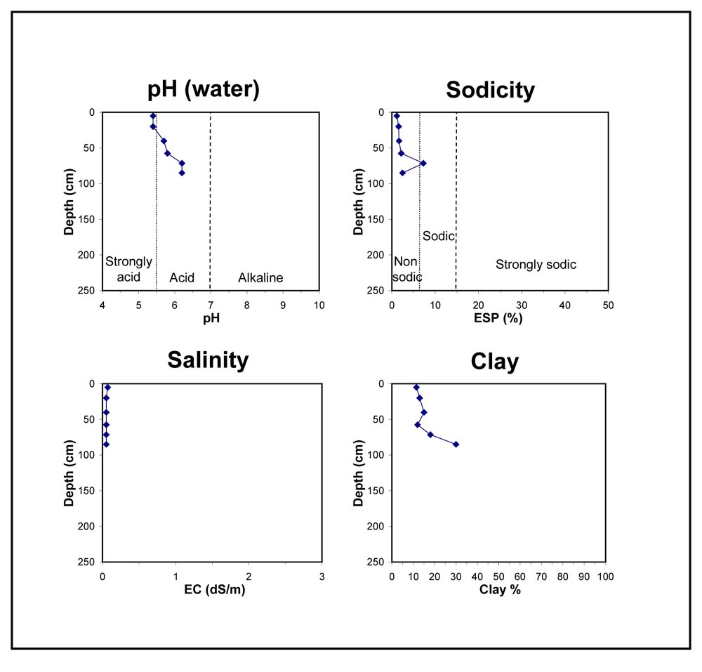 | B22 | 100-200+ cm | Yellowish brown (10YR5/6) sandy light medium clay, many prominent red and orange mottles, pH 6.2 |